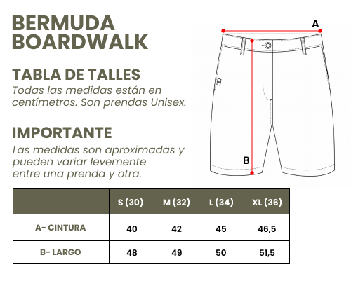Perfecta para usar como bermuda casual o traje de baño, la Boardwalk se convierte en tu aliada para los días de verano: resistente, práctica y con el sello de estilo que distingue a la marca.